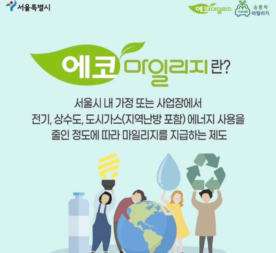 서울시는 에코마일리지 사업, 그밖의 지역에서는 탄소포인트제도를 활용하면 됩니다.
