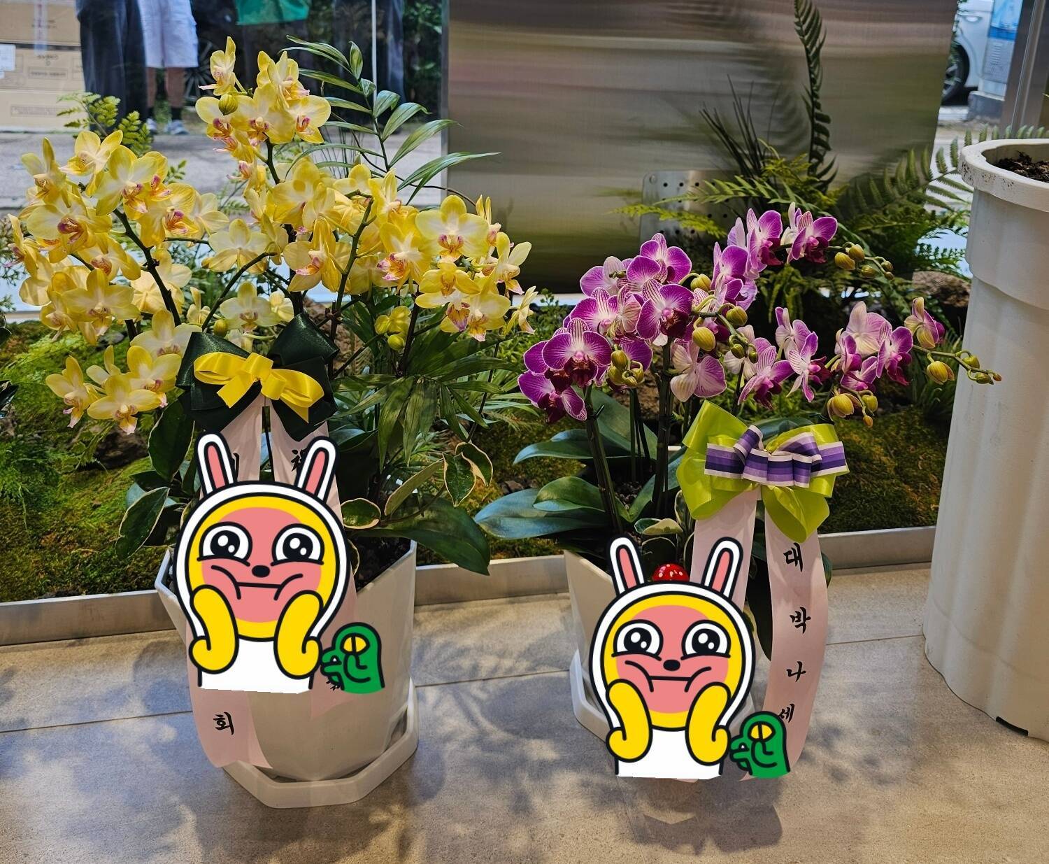 - 대형화분은 아니지만 꽃 자체가 너무 예뻐 개업 분위기를 한껏 화려하게 유지시켜줍니다.