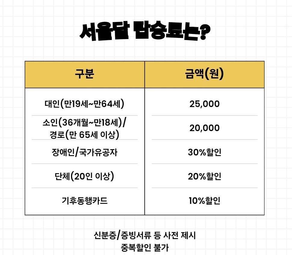 탑승료 : 성인 25000원, 소인·경로 20000원