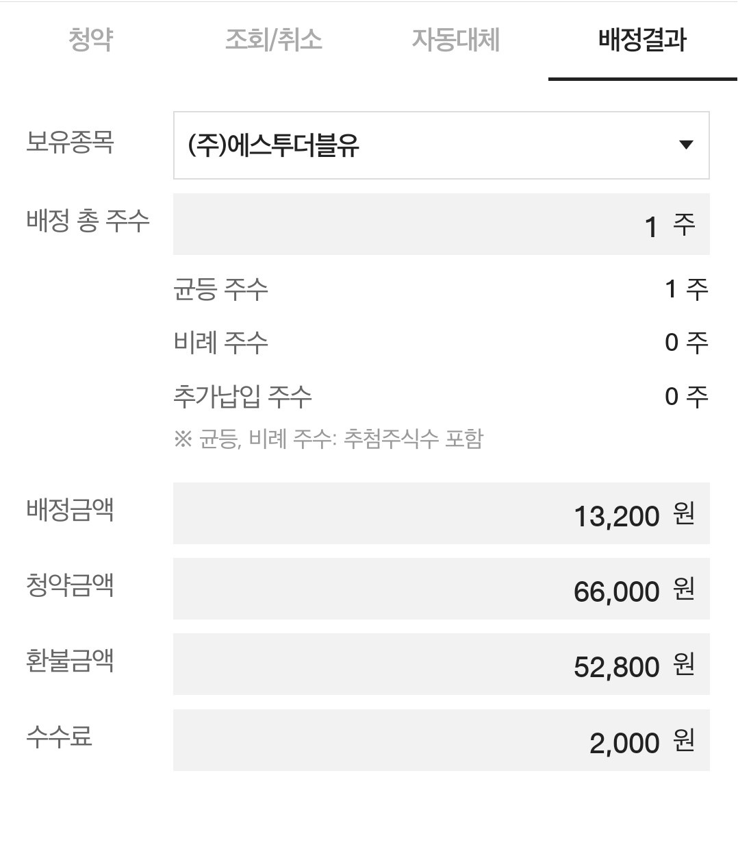 ✅ 청약기간이 끝난 후 며칠 이내 균등 배정을 받게 됩니다. 우리는 최소 청약자이기 때문에 많아야 1주 정도 받아요 ^^~ 나머지 청약 증거금은 돌려받게 됩니다.