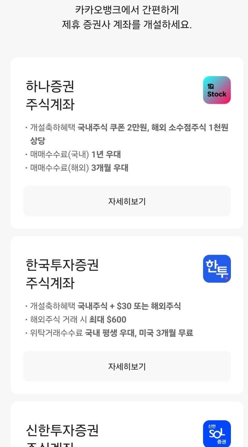 | [한번에 여러 계좌 개설하는 추천꿀Tip] 추천!추천! 1. 카카오뱅크 앱에 들어간다. 2. 투자 - 증권사 주식계좌 클릭한다. 3. 원하는 증권사 개설 |
