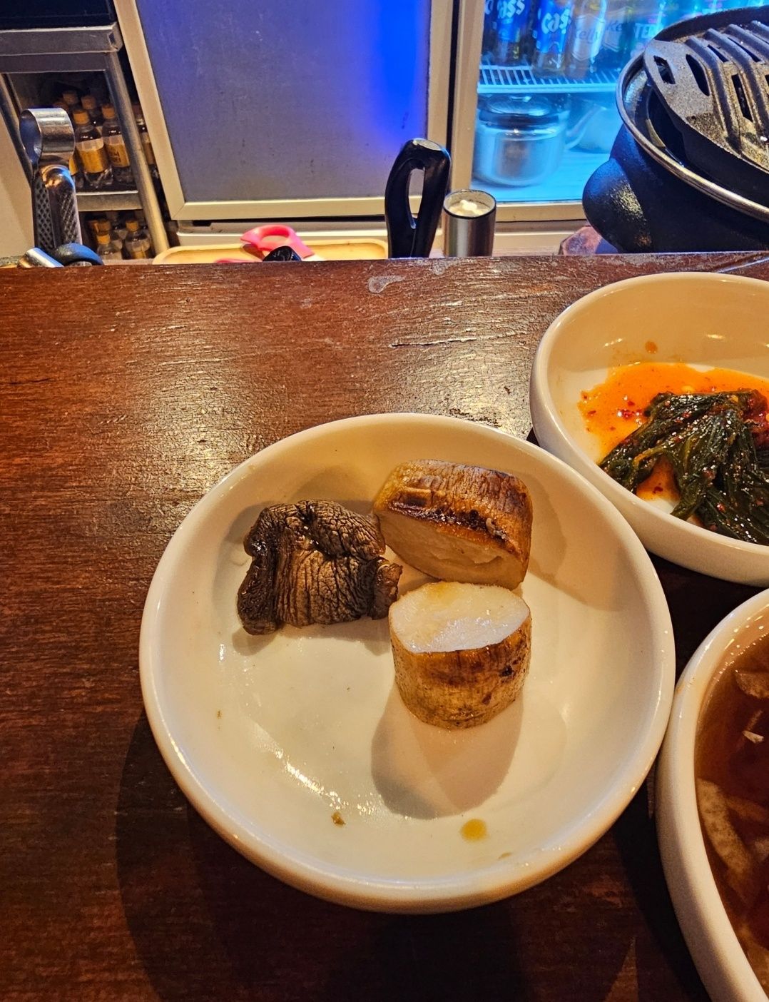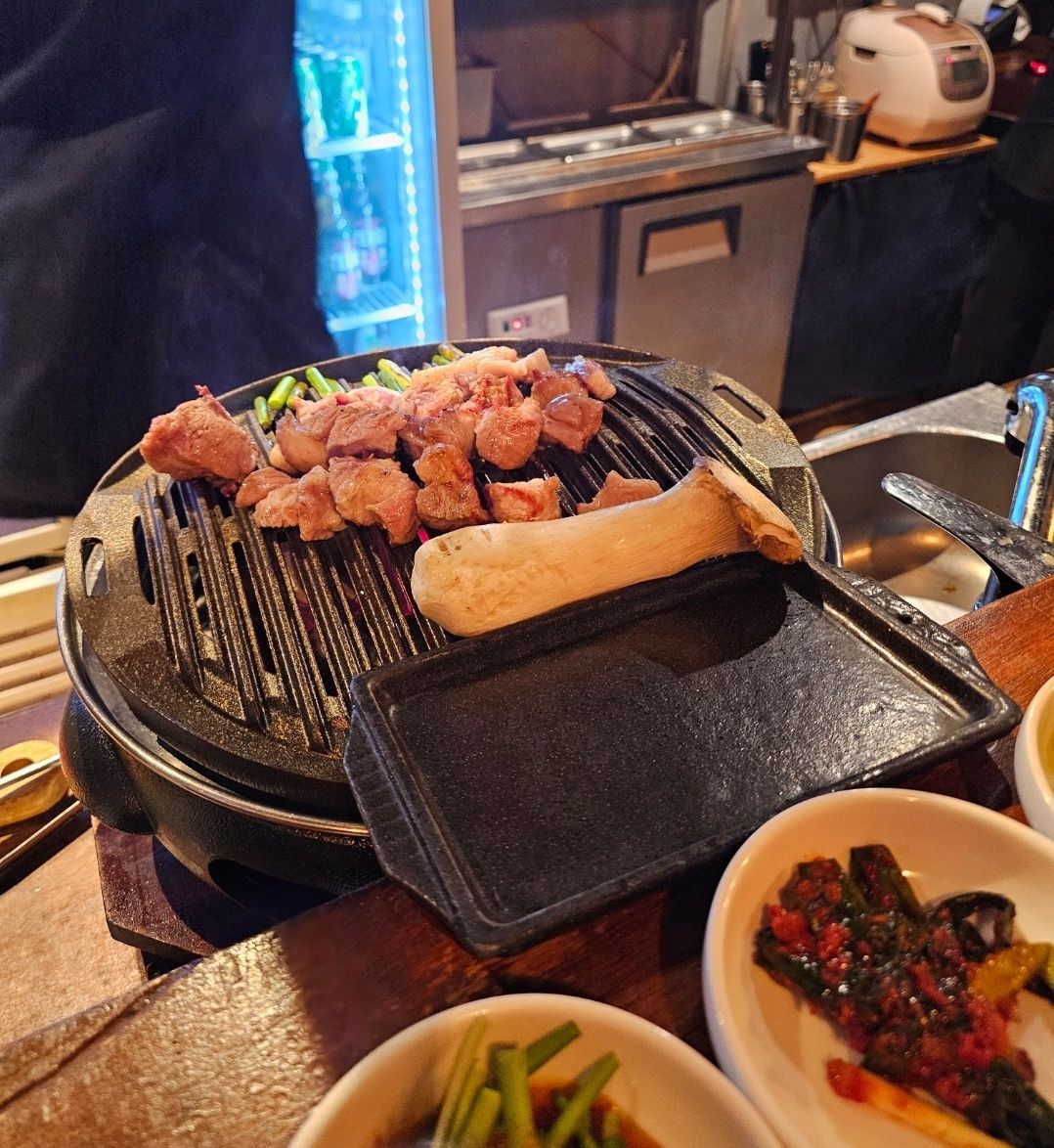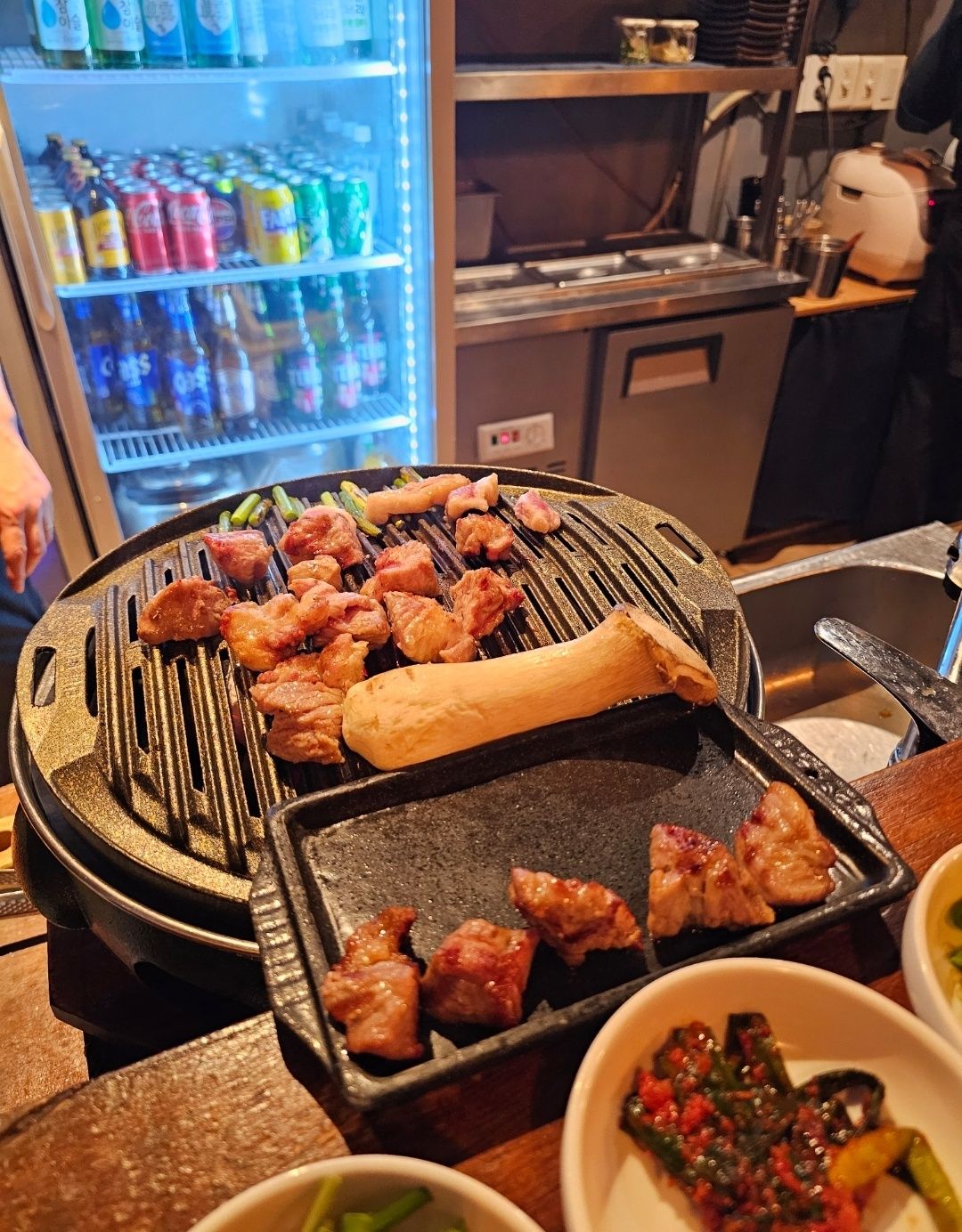 어쩜 이렇게도 촉촉하게 구워주시는지! 너무 촉촉하고 맛있어서 새송이버섯을 더 먹고 싶었지만 고기가 구워지기 시작하는 첫 주문시에만 주문이 가능하더라고요! 아무래도 시간을 두고 진중하게 구워주셔야 하기에 그런 것 같아요!