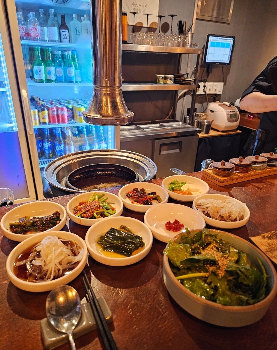 마늘소스, 와사비, 소금 등 소스뿐만 아니라 갓김치, 파김치, 오이김치, 명이나물, 양파절임, 상추겉절이 등 모든 반찬이 하나같이 맛있어서 고기와 함께 곁들여 먹었을 때 맛의 풍미가 올라갔습니다.