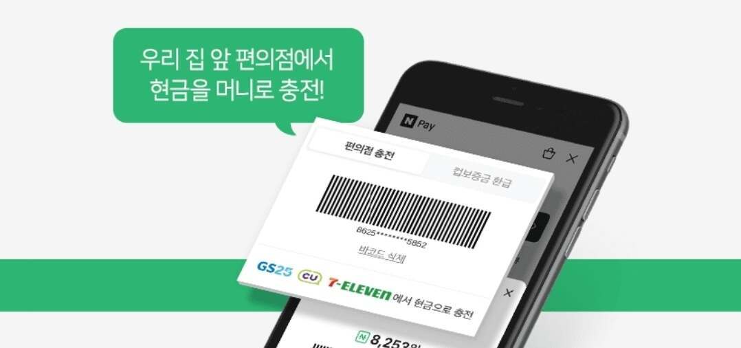 | 편의점 충전을 통해 GS25, CU, 세븐일레븐에서 현금을 제시하고 해당 금액을 바로 네이버페이 머니로 충전할 수 있습니다. 편의점에서 현금결제하고 생기는 잔돈도 물론 충전하실 수 있어요! |