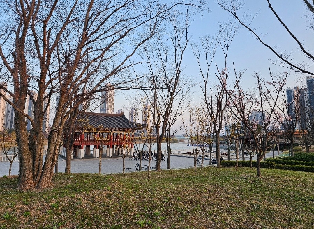 지난 가을 불꽃놀이기간에도 주차가 가능할 만큼 주차하기 정말 용이해요! 심지어 토요일 방문 기준 무료여서 좋았습니다. 주차 후 바로 옆에 있는 화장실 이용하기도 편해요. 그리고 바로 뛸 수 있는 코스가 붙어있습니다.