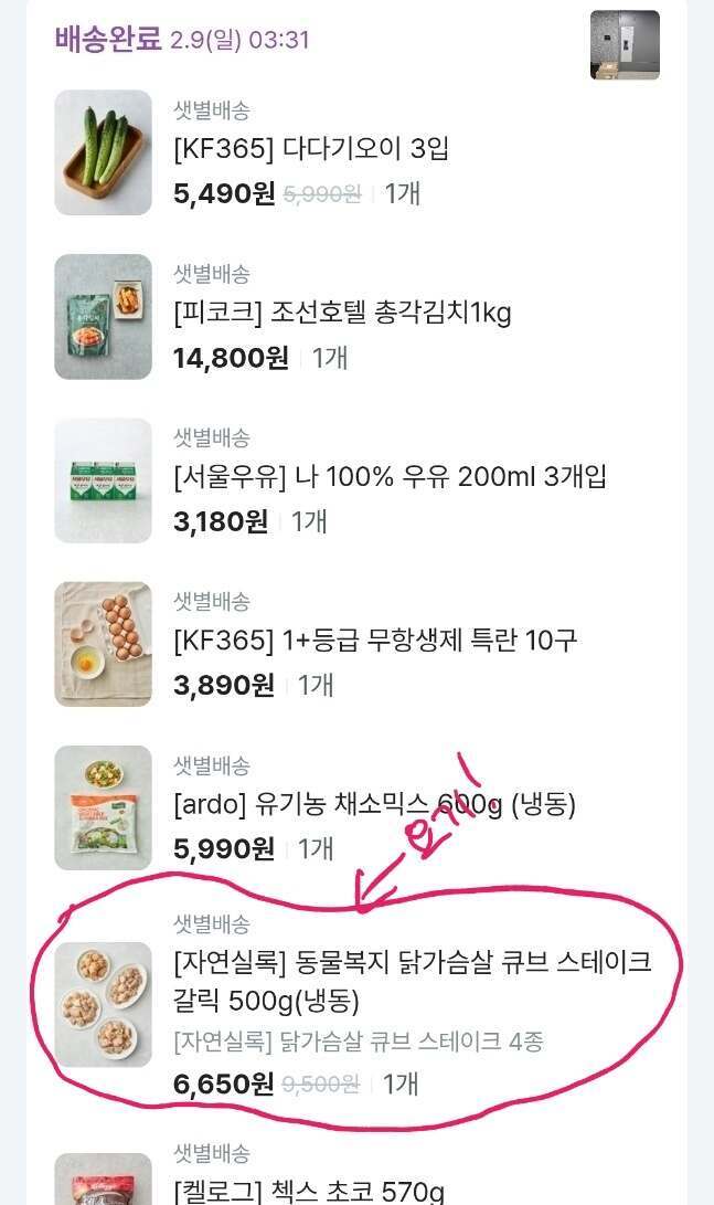 2. [자연실록]동물복지 닭가슴살 큐브스테이크 갈릭(500g/지금 마켓컬리에서 20%할인하여 6,650원)