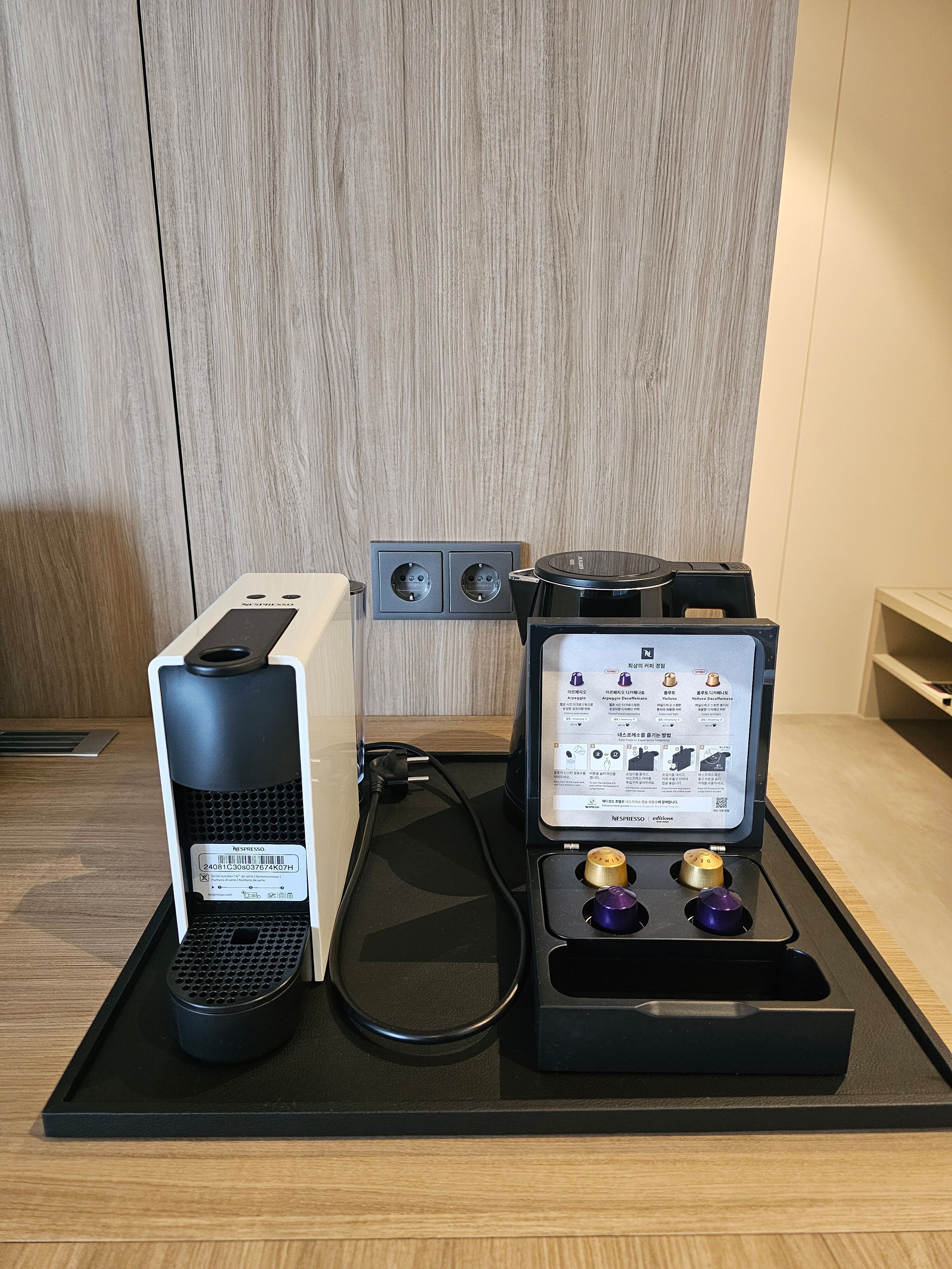 커피를 무척 좋아하는 나는 네스프레소 커피머신을 보고 무척 반가웠습니다. 캡슐 4개가 마련되있어 1박 2일 머무는 동안 나의 힐링푸드인 커피도 즐길 수 있는 곳이었습니다. 또한 마련되있는 샤워가운은 굉장히 부드러워서 머무는 동안 편안함을 주었습니다.