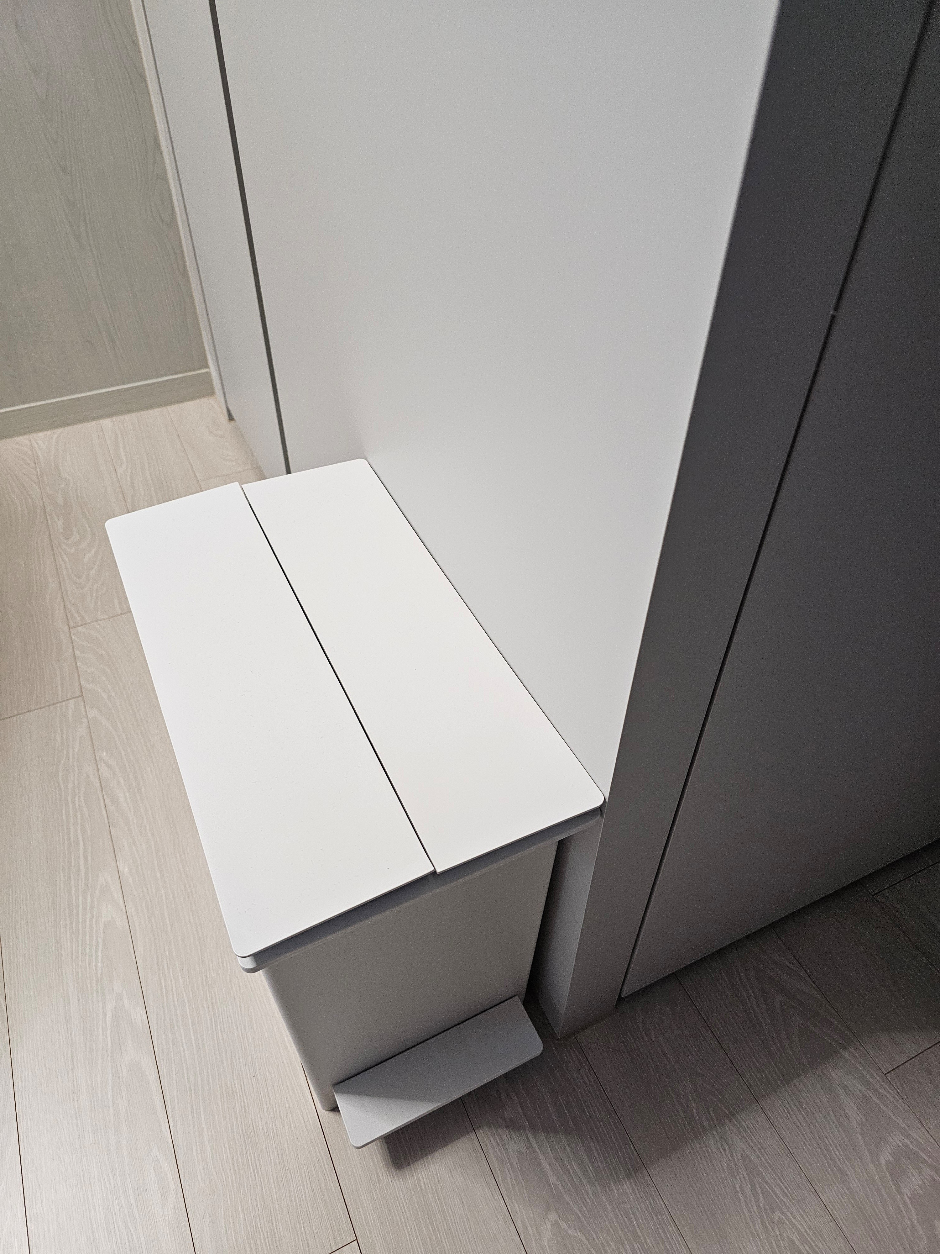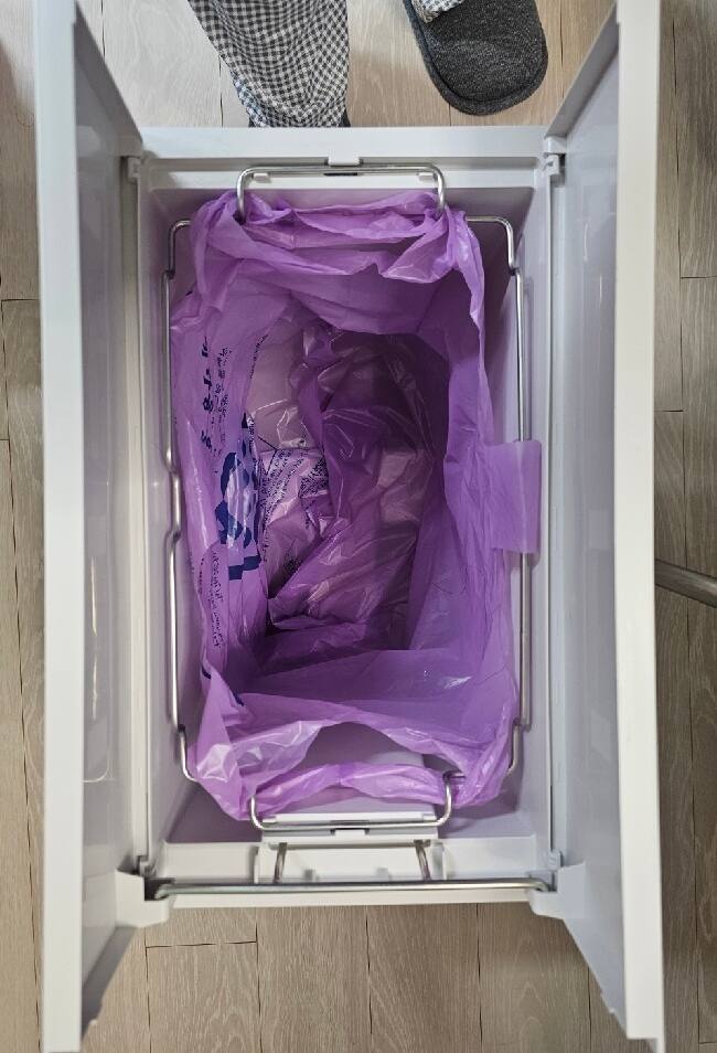 평소 종량제봉투 20리터를 사용하고 있어 종량제봉투 20리터가 들어갈 만한 쓰레기통을 찾고 있었습니다. 종량제봉투 20리터가 정확하게 들어가고 발로 밟으면 뚜껑이 양쪽으로 열리는 구조라 매우 편리합니다. 색상도 라이트그레이빛이 나 매우 깔끔합니다.
