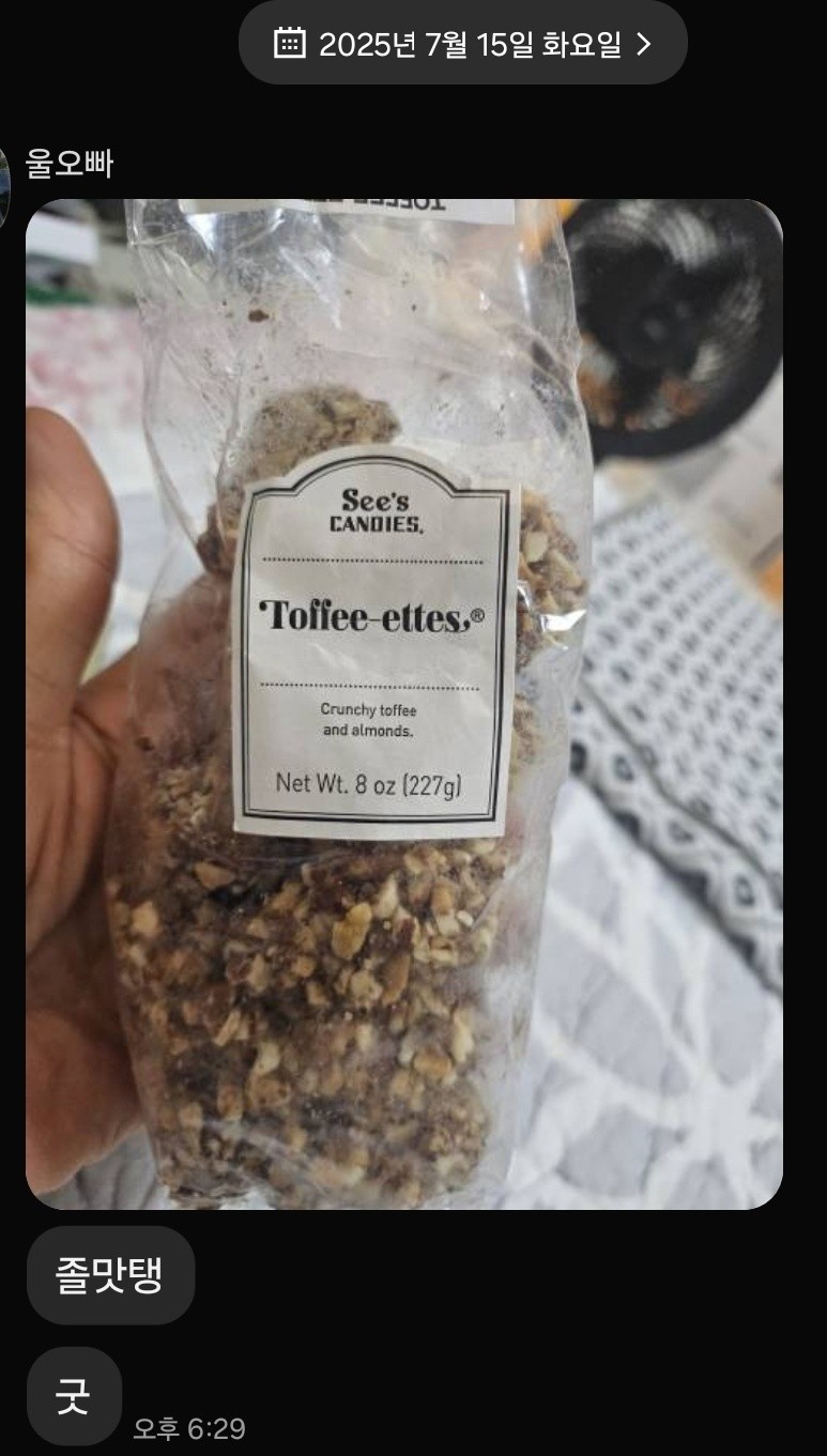 씨즈 캔디(See’s Candies) 토피에츠를 직접 먹은 가족의 반응에 기분이 좋기도 하였습니다.