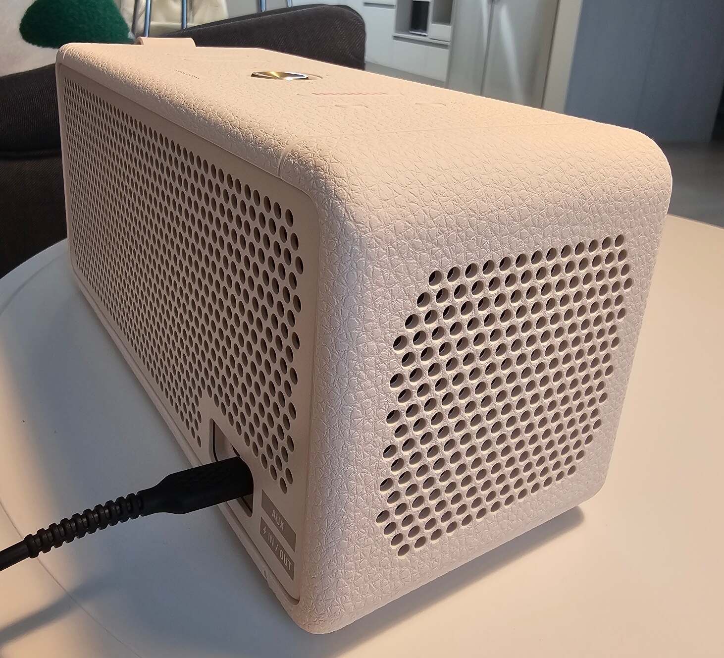또한 다른 기계의 보조배터리 역할도 하기 때문에 캠핑가서 갑자기 휴대폰 배터리가 나가 당황스러울 때 충전잭만 있다면 마샬미들톤 후면 충전 포트에 끼워 충전하시면 됩니다.