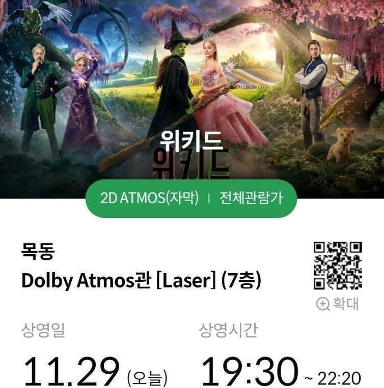 메가박스 돌비 애트모스관에서 위키드 보신 분들 후기를 보면 생각보다 사운드가 약해 별로였다는 반응이 많아 다소 걱정이 들었으나 저는 만족스러웠습니다. 소리가 비교적 크고 빵빵 울려 영화를 보는 내내 내 심장까지 동요되어 영화가 끝난 후에도 여운이 오래 남아 영화가 종료된 후에도 자리를 떠나지못했습니다. 앞으로도 사운드가 중요한 영화일 수록 다시 메가박스 목동 애트모스관을 찾을 것입니다.