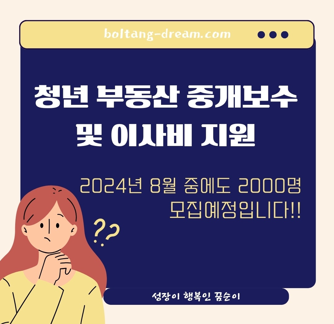 - 이사가 잦은 청년의 주거비 부담을 경감하기 위해 부동산 중개보수와 이사비 등을 지원하는 사업입니다. 2024년 지원규모는 총 6,000명이며 상반기에는 4000명, 하반기에는 2000명 모집 예정입니다. 하반기는 8월 정도 시행예정입니다.