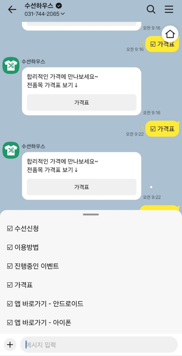 카톡 친구 추가를 통해 언제든지 질문하고 답변도 편리하게 받아볼 수 있어 바쁜 현대사회에 꼭 필요한 수선 앱이라고 생각합니다.