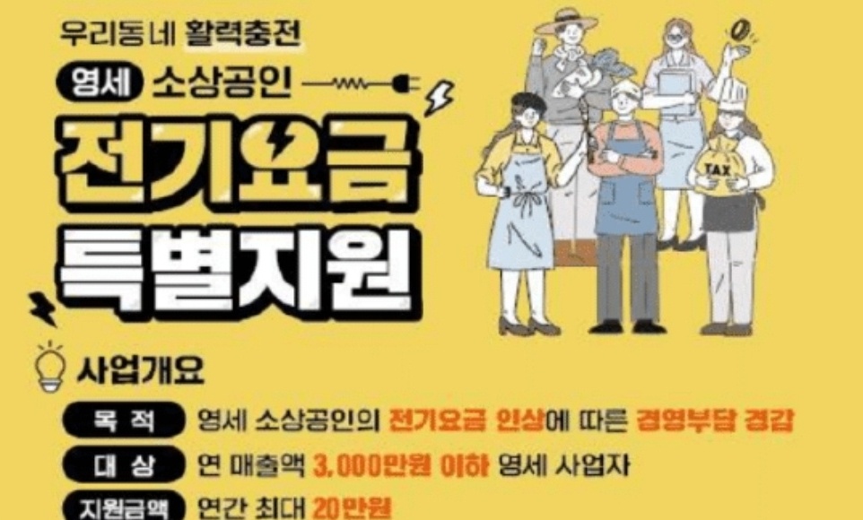 - 전기요금 인상으로 어려움을 겪는 영세 소상공인의 전기요금 부담을 경감하기 위한 사업입니다.