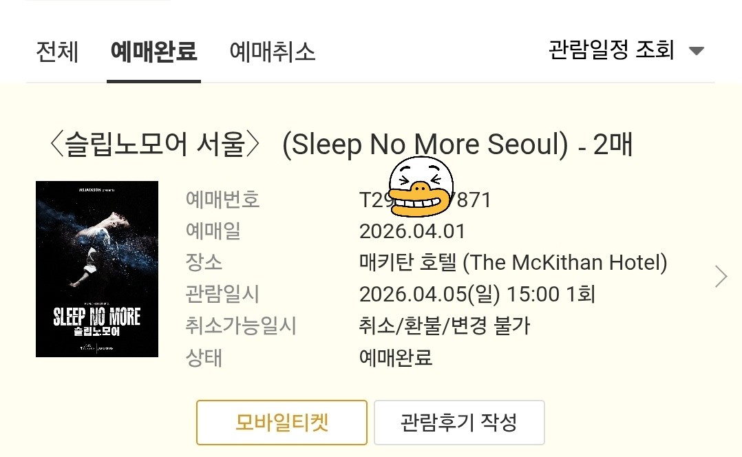 러닝타임 180분동안 보지 못한 장면이 많아 n차 관람을 하기도 하지만 무엇보다 태어나서 이런 경험, 체험이 처음이기에 여운이 정말 오래가는 공연이었습니다. 자꾸 슬립노모어에서 봤던 장면들이 일상의 틈에 자꾸 자꾸 튀어나와 생각이 나더라고요. 그만큼 생소한 체험이었습니다. 경험에 투자하는 거라면 슬립노모어 서울 공연이 끝나기 전(26.5.31 일)에 꼭 한번 보시기를 추천드립니다. 일상이 노잼이라면 정말 새로운 재미를 경험하게 할 것입니다.