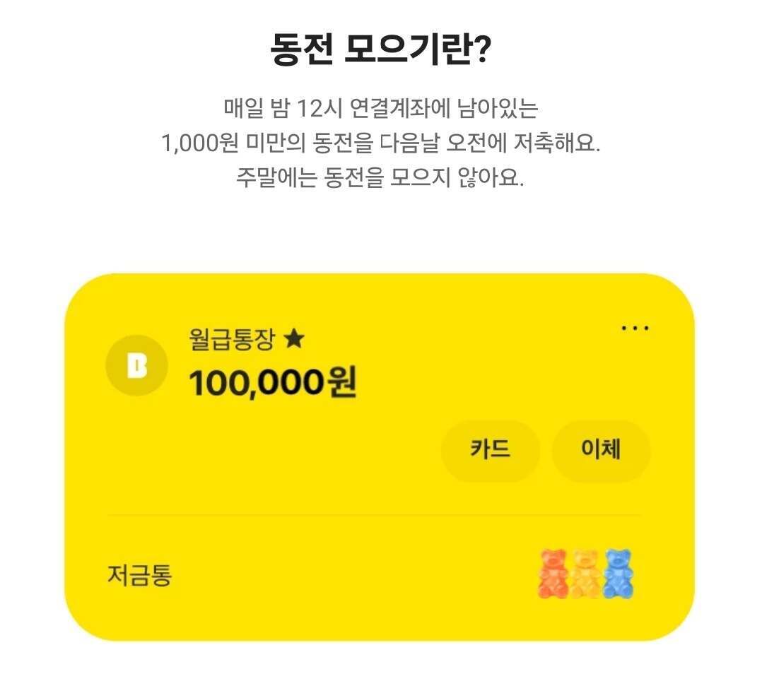 매일 밤 12시 연결계좌에 남아있는 1000원 미만의 동전을 다음날 오전에 저축해주는 기능입니다.