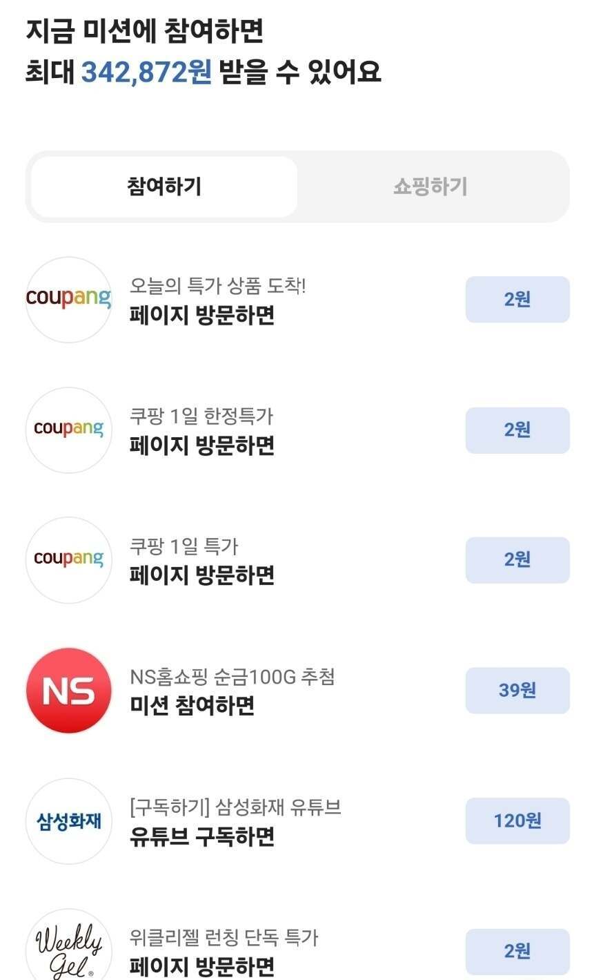 4. 시간이 나는대로 미션을 수행하면 추가 용돈을 챙길 수 있습니다. 수행에 시간이 더 많이 소요되는 경우 적립금이 더 크지만 사이트 잠깐 방문으로 2원 받는 것도 재밌더라고요.