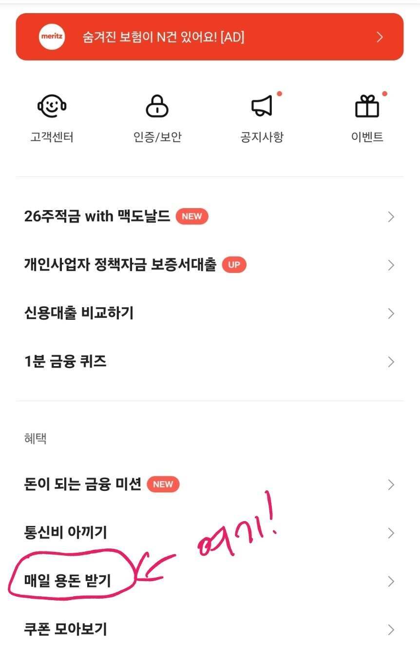 3. 매일 버튼 클릭하면 또 적립금이 지급합니다. 여기까지는 매일 챌린지처럼 들어가서 눌러보시면 작고 소중하고 귀여운 용돈을 받을 수 있습니다.