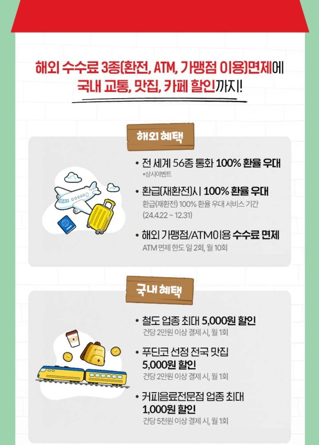 1. 해외 가맹점 이용 시 수수료 면제(전월 실적과 무관)