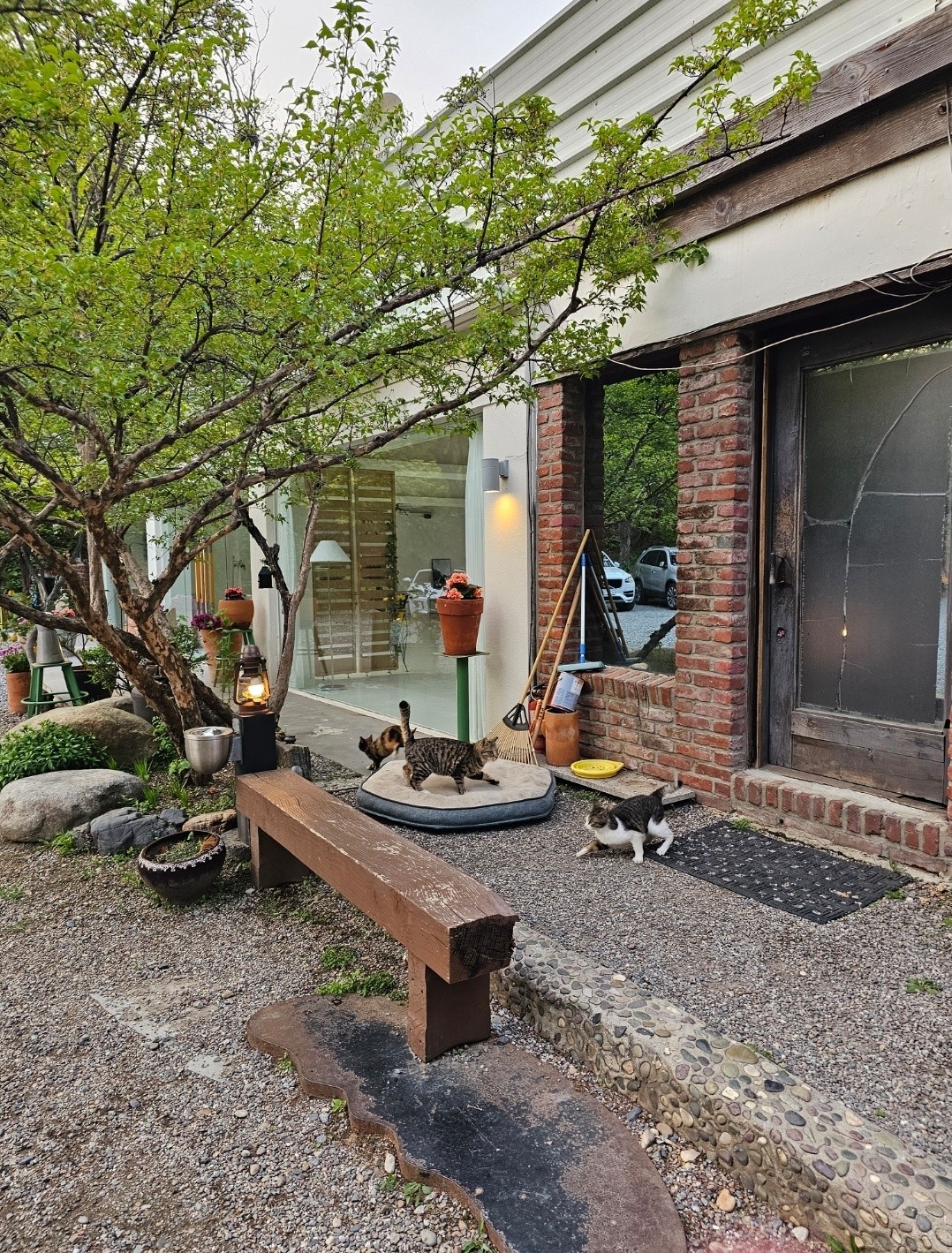 귀여운 개와 고양이들이 손님들을 맞이해줍니다.