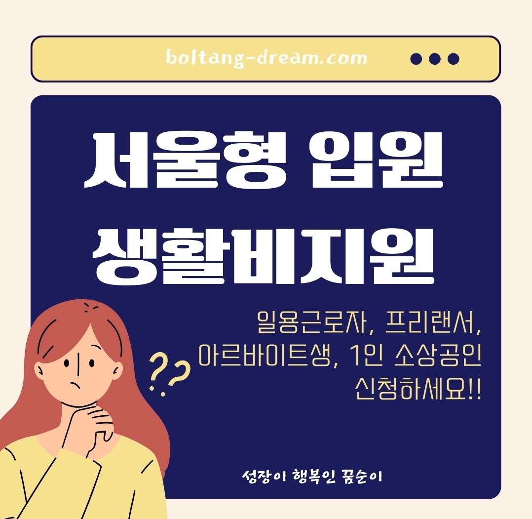 - 하루 수입 걱정에 아파도 치료 안받고, 건강검진도 미루는 일용직 · 이동노동자 · 프리랜서, 아르바이트생, 1인 소상공인 등을 국가 일반건강검진 기간 동안 최대 14일 지원금을 지원하는 제도입니다. 입원 최대 13일(입원연계 외래진료 최대3일), 국가 일반건강검진 최대 1일 지원하며 1일 지원금액은 91,480원이며 연최대 지원금액은 1,280,000원입니다. 작년 10월 조례 개정을 통해 서울형 입원 생활비 지원이 확대되었고 이는 23년 1일 89,250원에 비해 오른 것입니다.