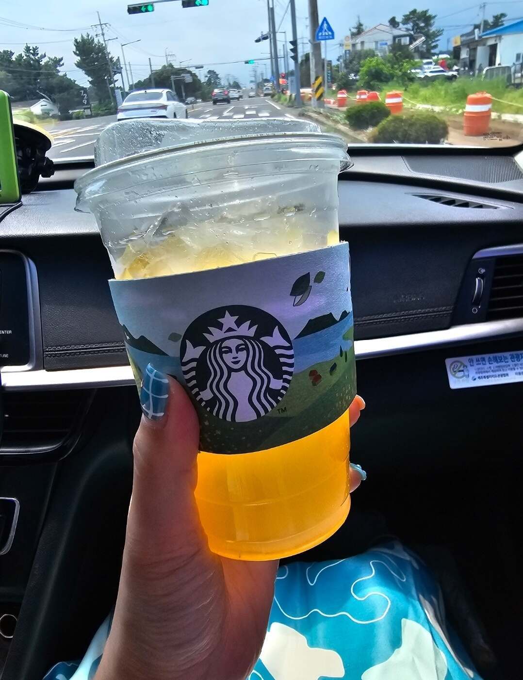 우리는 가까운 스타벅스 드라이브스루를 검색하여 아이스커피와 아이스유자민트티를 포장하였습니다. 생선요리를 먹고난 후로 스타벅스의 아이스유자민트티가 아주 제격이었습니다. 광어다 표선본점에서 식사를 한 후 가까운 스타벅스에서 개운하고 시원한 아이스유자민트티조합 추천드립니다.