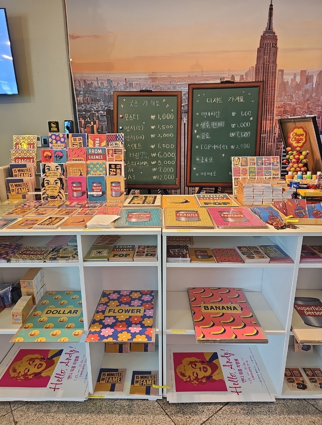 전시회 입구에 작은 굿즈샵이 있습니다. 넓진 않지만 예쁜 앤디워홀님의 작품으로 만든 엽서와 포스터에 눈이 돌아갑니다.