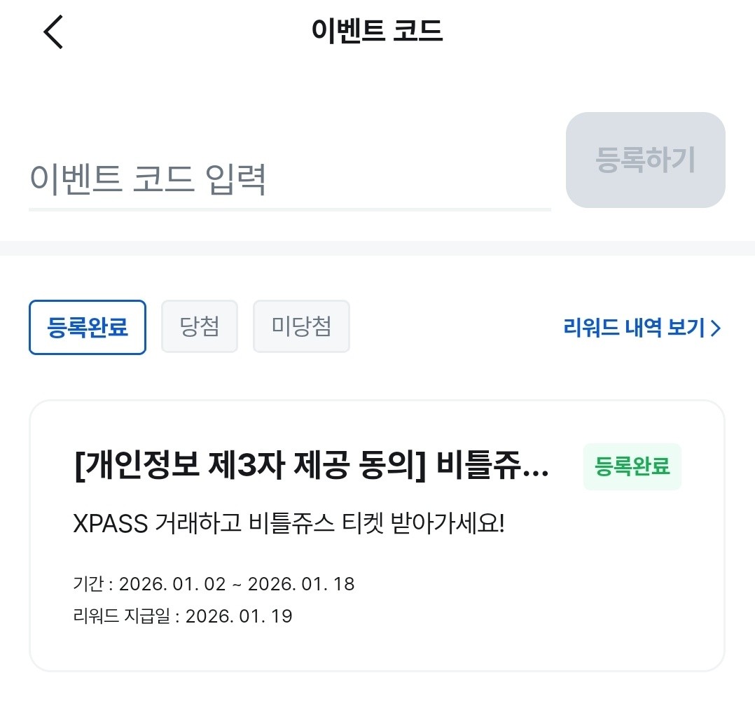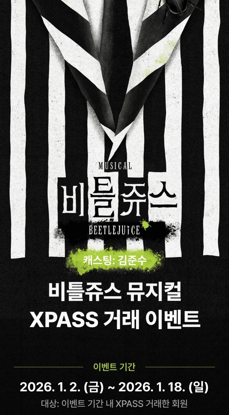 투자가 단순히 숫자의 오르내림이 아니라, 이렇게 일상의 즐거움으로 연결될 때 정말 기분이 좋은 것 같아요. 현재는26.1.18까지 이벤트 기간 내 신규 회원인 경우 XPASS 1만 원 이상 거래 시 총 200명 추첨하여 캐스팅 김준수인 비틀쥬스 뮤지컬 티켓을 주는 이벤트를 진행하고 있습니다. 저 또한 참여중이고 저는 기존 회원으로 XPASS 10만 원 이상 거래시 총 166명 추첨하여 비틀쥬스 뮤지컬 티켓을 받을 수 있습니다. 약간 복권 사놓고 당첨자 발표 기다리는 기분입니다.