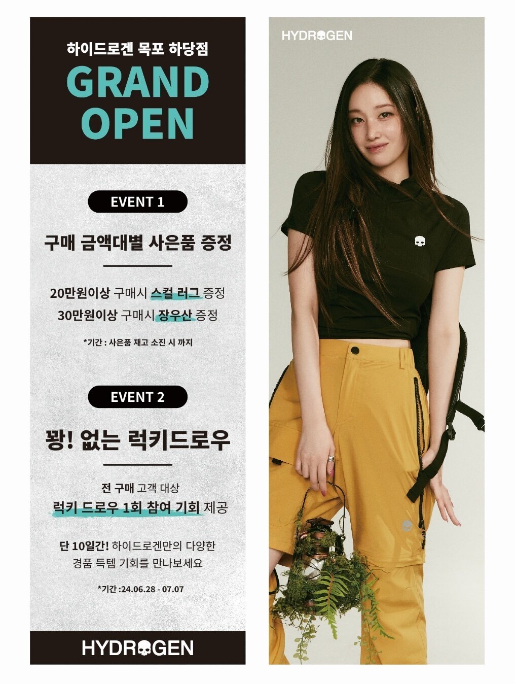 하이드로겐(HYDROGEN) 목포 하당점이 2024년 6월 28일 금요일에 그랜드오픈을 합니다. 하이드로겐은 1월 24일 스타필드 수원 1호점 오픈을 시작으로 2024년 3월부터 국내 백화점, 스타필드에서 본격적인 판매를 시작하였고 대리점으로는 목포 하당점이 전국에서 첫오픈입니다. 따라서 관심과 사랑이 많이 쏟아질 것으로 예상됩니다.