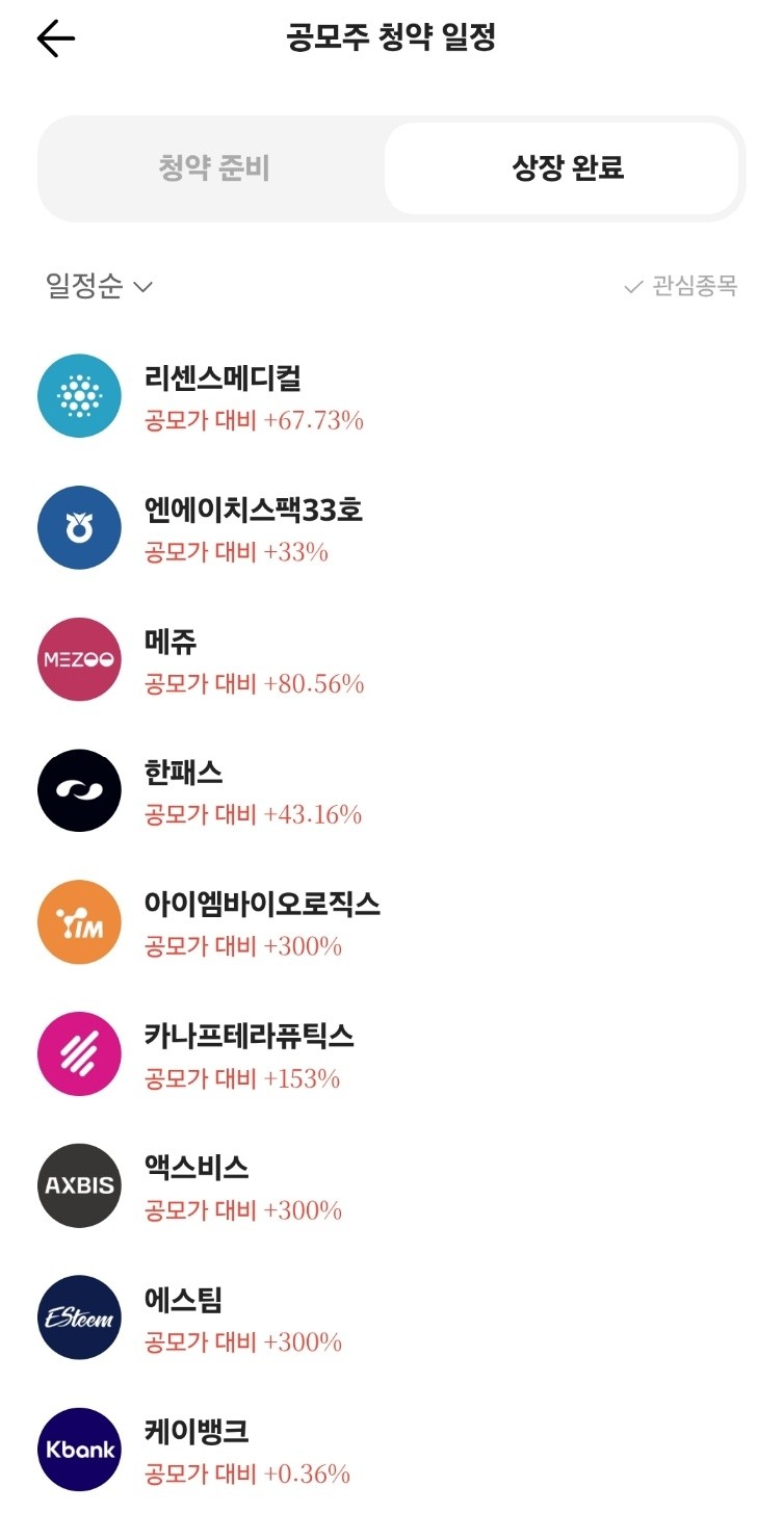 이 중 신한제17호스팩, 교보20호스팩을 제외한 모든 공모주에 청약을 넣었고 균등으로 진행했기에 배정받은 종목은 인벤테라, 엔에이치스팩33호, 메쥬, 카나프테라퓨틱스, 케이뱅크였습니다. 청약이 되길 바랐던 종목(한패스, 아이엠바이오로직스, 에스팀, 액스비스 등)은 그만큼 경쟁이 치열하여 배정을 받지 못하였습니다.