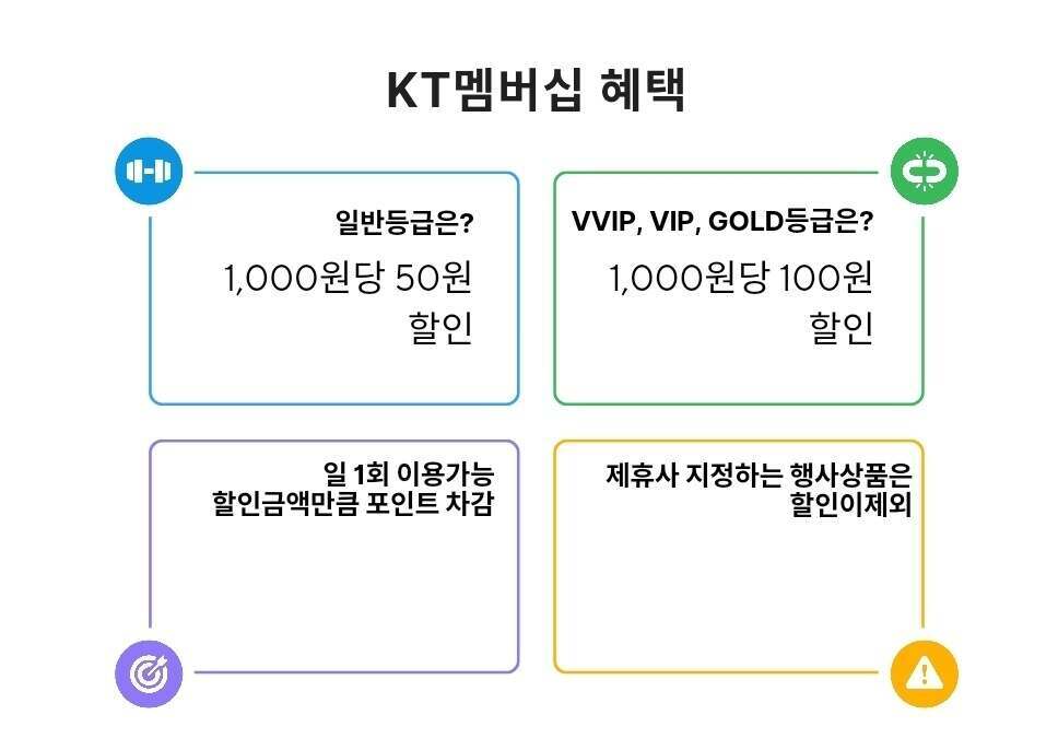 KT와 LG유플러스를 사용하시는 분이 통신사 할인을 등록해놓으면 결제만으로 동시에 할인혜택을 받을 수 있습니다. 통신사할인은 멤버십 등급에 따라서 할인 금액이 달라집니다.