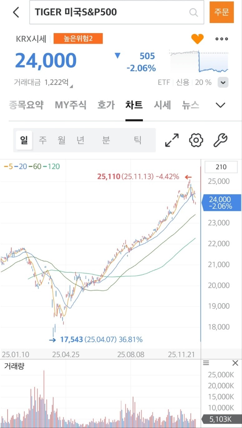 저는 미래에셋 TIGER 미국S&P500을 꾸준히 매수하고 있습니다.